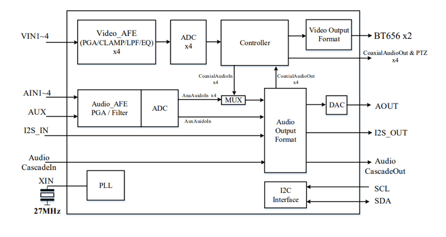 - 支持 2/4 個通道復(fù)合一個 BT656 輸出;