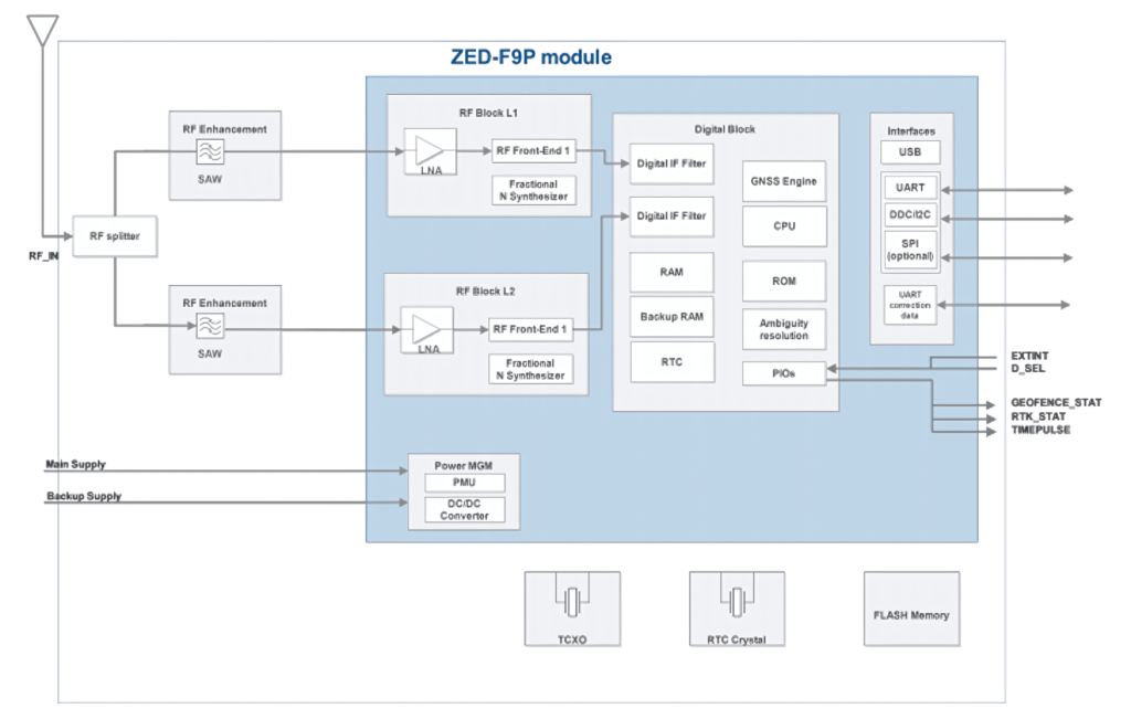 ZED-F9P內(nèi)部框圖
