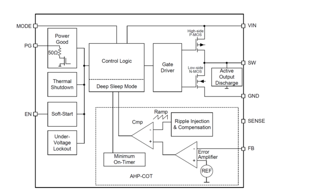 SGM61012是一顆低壓同步降壓型DC-DC轉(zhuǎn)換器芯片,采用了圣邦微電子全新研發(fā)的AHP-COT(Adaptive Hysteresis and Pseudo-Constant On-Time Control),具有超快的負(fù)載或線電壓瞬態(tài)響應(yīng)特點(diǎn)。
