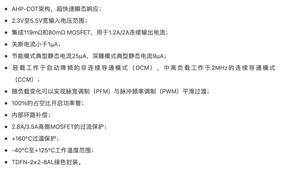 AHP-COT控制架構(gòu)實(shí)現(xiàn)超快的負(fù)載瞬態(tài)響應(yīng),保證VOUT較小的電壓降。