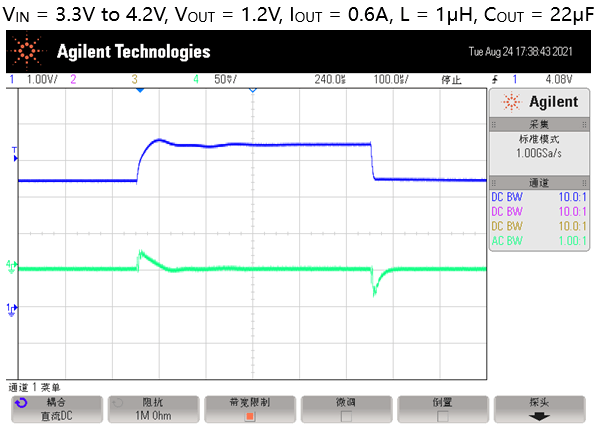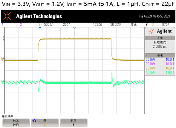 圖3SGM61012 5mA-1A及50mA-1A負(fù)載瞬態(tài)響應(yīng)波形