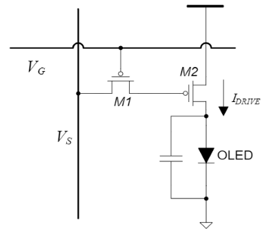 以一個像素單元為例,M1管與M2管都是PMOS,當VG為負壓低電平時,M1、M2導通,會產(chǎn)生漏極電流IDRIVE,IDRIVE決定OLED發(fā)光亮度,VG控制像素單元MOS通斷,VS決定像素點的發(fā)光亮度。 從AMOLED驅(qū)動方式可見,電源管理芯片需要在非常寬范圍內(nèi)同時輸出多個穩(wěn)定的工作電壓,電致發(fā)光EL的正、負驅(qū)動電壓,以及數(shù)字接口電壓。