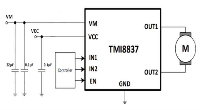 - 在輸入電壓和驅(qū)動電流方面,TMI8837的電機供電電壓耐壓更高,可達到12V,但與DRV8837相比,1.5A驅(qū)動能力稍弱些;