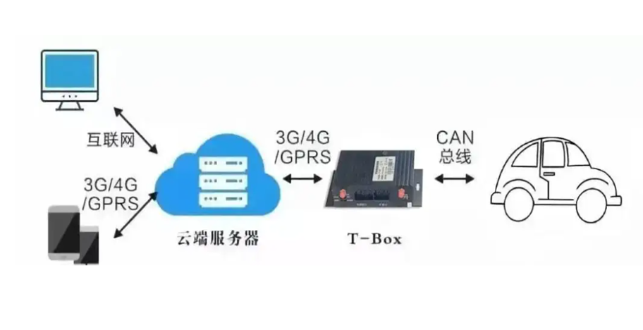 Telematics BOX,簡稱車載T-BOX,車聯(lián)網(wǎng)系統(tǒng)包含四部分,主機(jī)、車載T-BOX、手機(jī)APP及后臺(tái)系統(tǒng)。主機(jī)主要用于車內(nèi)的影音娛樂,以及車輛信息顯示;車載T-BOX主要用于和后臺(tái)系統(tǒng)/手機(jī)APP通信,實(shí)現(xiàn)手機(jī)APP的車輛信息顯示與控制。