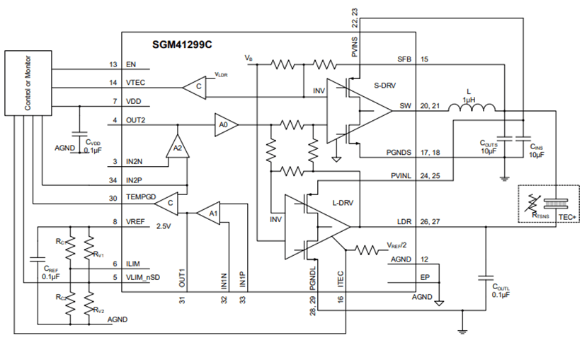 SGM4129x系列,集成式1.5/3A TEC控制器,包括差分驅(qū)動(dòng)、脈沖寬度調(diào)制和斬波放大器等