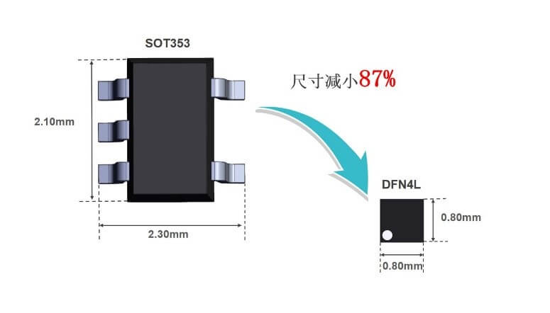 為滿足可穿戴設(shè)備、工業(yè)控制、網(wǎng)絡(luò)通信等各種應(yīng)用中邏輯器件小型化需求,I-CORE推出超小極薄無引腳封裝。 在產(chǎn)品中采用更小的封裝可以有效節(jié)省PCB空間,降低制造商成本。 與業(yè)界普遍使用的有引腳封裝如SOT相比,超小極薄無引腳封裝可節(jié)約高達(dá)87%、70%的PCB空間。