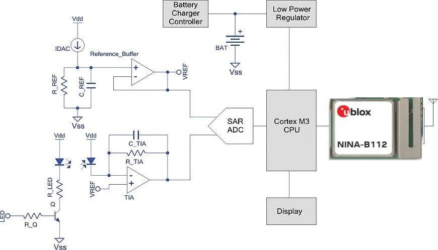 在這種情況下, u-blox NINA-B112藍(lán)牙模塊集成到其設(shè)備之中。其集成的微控制器可管理光學(xué)傳感器的捕獲過(guò)程,并通過(guò)藍(lán)牙功能將測(cè)量結(jié)果發(fā)送到智能手機(jī)。事實(shí)證明,藍(lán)牙低功耗5.0模塊是降低能耗的絕佳幫手,能恰到好處地滿足這些訴求。此外,其小巧的尺寸(10.0 x 14.0 毫米)也促進(jìn)了電子設(shè)備的小型化的。