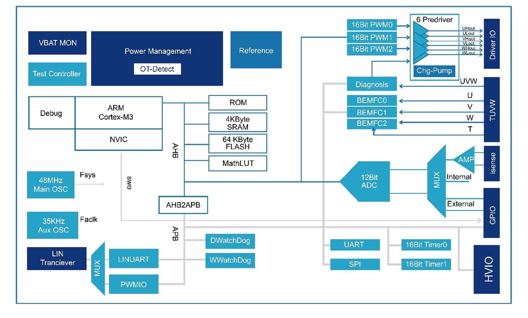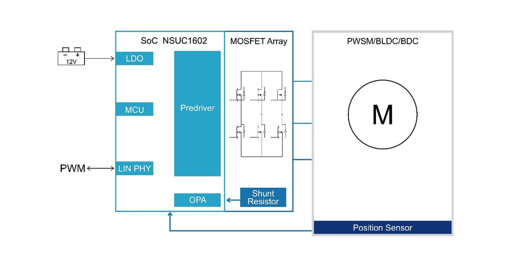 作為國內汽車芯片供應領域的佼佼者,納芯微繼 2023 年初在國內率先推出車用小電機驅動 SoC NSUC1610 之后,于近期正式向市場推出具備高集成度的嵌入式電機控制 IC NSUC1602。相較于集成了 LIN 和 MOS 功率級的單芯片 NSUC1610,NSUC1602 這款集成式 SoC 創(chuàng)新性地采用支持外置獨立功率 MOSFET 的設計架構,這一獨具匠心的方案使其能夠游刃有余地應對對電流需求更為嚴苛的應用場景。