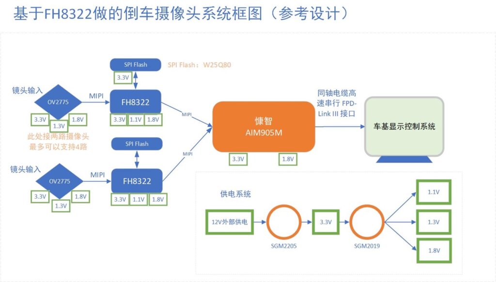 - 慷智的AIM905M芯片通過(guò)mipi接口接收多路FH8322過(guò)來(lái)的信號(hào)mix處理