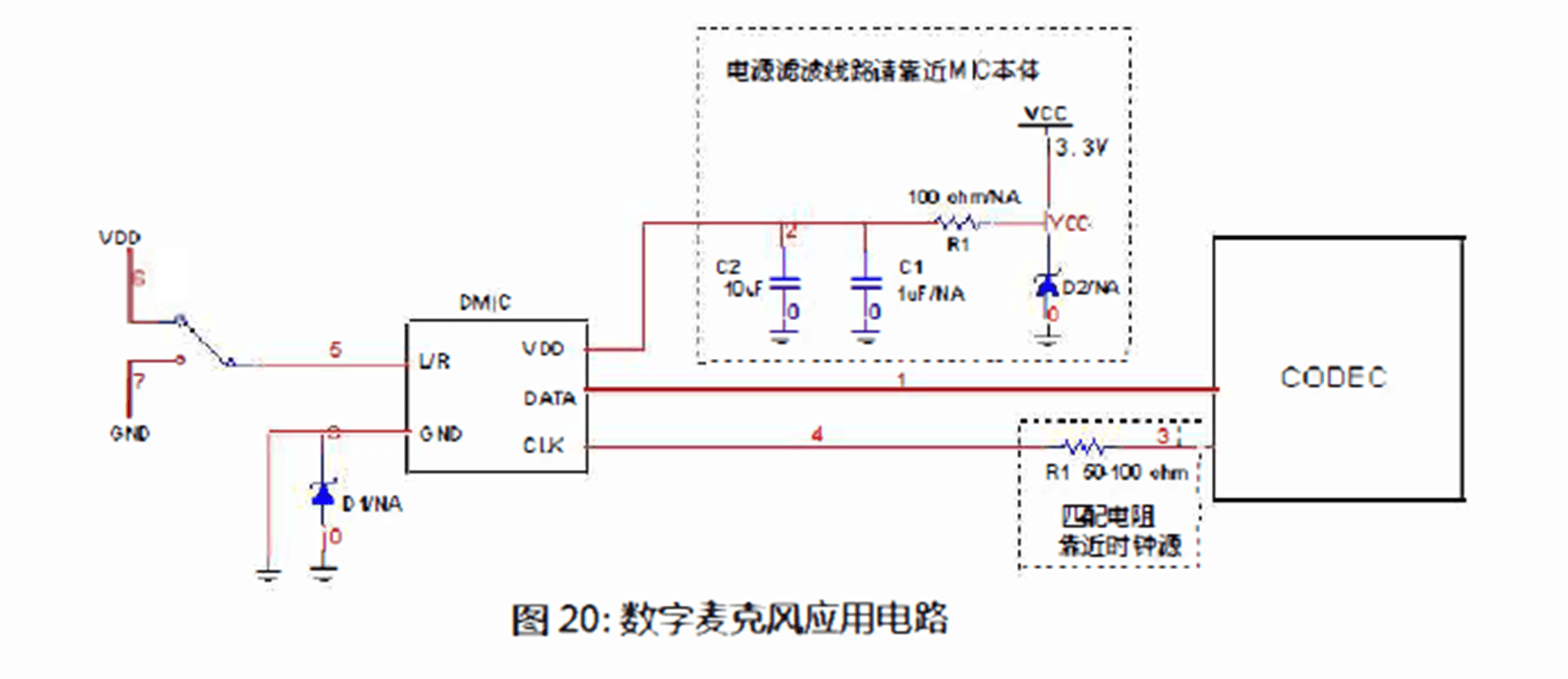 - CLK走線長度較長時 , 需要在靠近codec端串聯(lián)50-300匹配電阻 , 消除信號反射