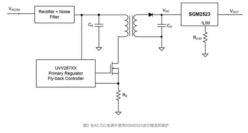 以上所列舉的應(yīng)用其實(shí)都需要精確的輸出限流和二級(jí)側(cè)保護(hù),以便能夠驅(qū)動(dòng)二級(jí)側(cè)電流傳感的需求。但如果額外添加精密運(yùn)算放大器,既增加了系統(tǒng)復(fù)雜性,也容易導(dǎo)致傳感損耗,而SGM2523內(nèi)部集成的低阻抗N溝道FET則提供了一個(gè)簡(jiǎn)單有效的解決方案。