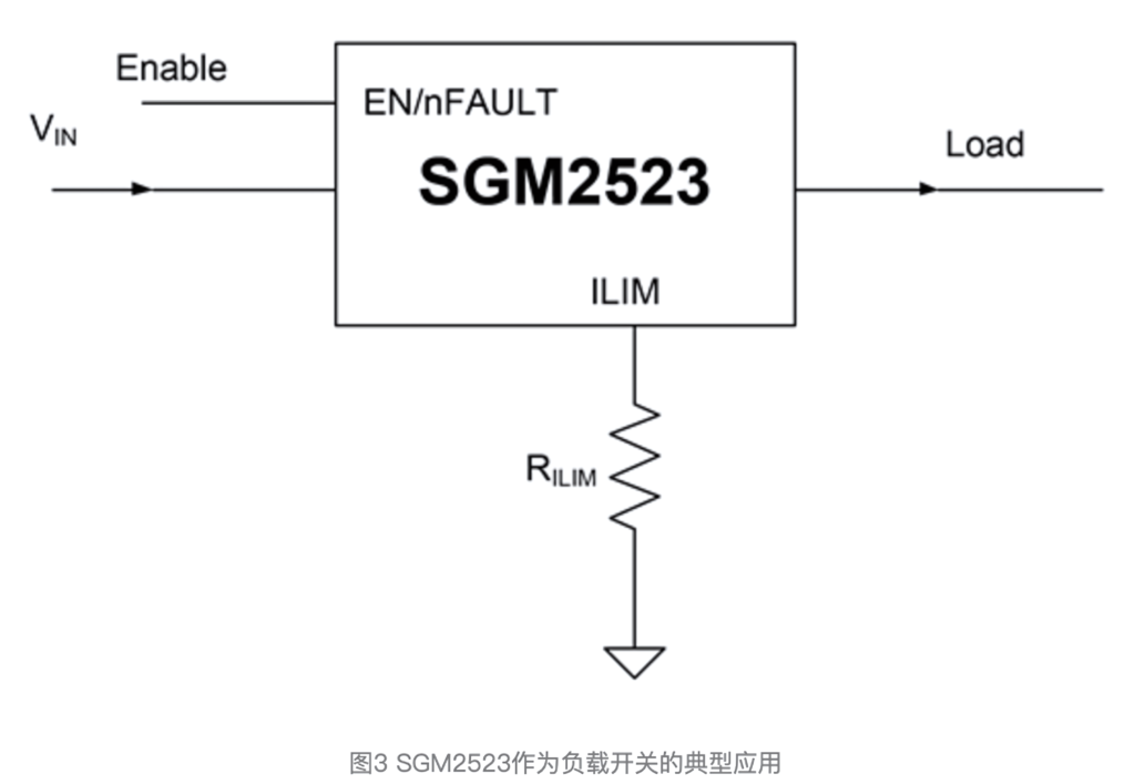 圖3顯示了SGM2523作為負(fù)載開(kāi)關(guān)的典型應(yīng)用。