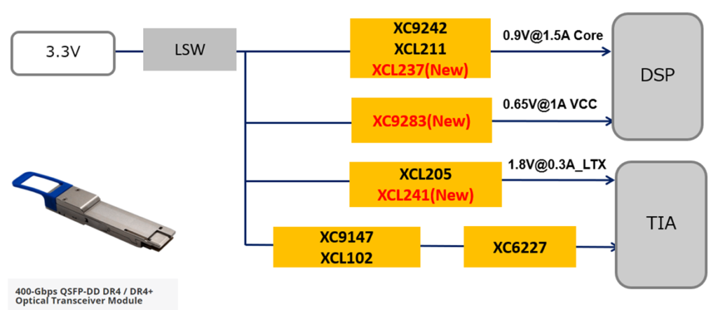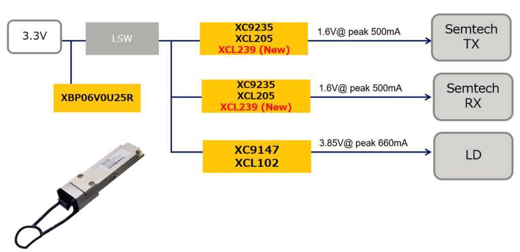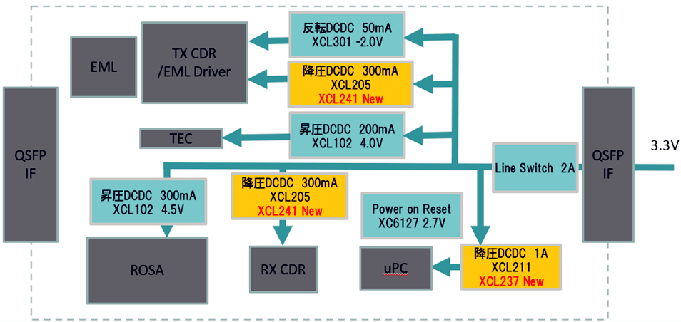 隨著大數(shù)據(jù)時代到來,高密度、高帶寬應用越來越多,高速光模塊(AOC有源光纜)系統(tǒng)布局越發(fā)捉襟見肘,各類IC器件封裝小型化、低背化要求也越來越嚴苛;Torex XCL系列線圈一體型micro DC/DC,因其外圍器件少,電路布局簡單,EMI特性優(yōu)異,是光模塊(AOC有源光纜)應用的優(yōu)良選擇。