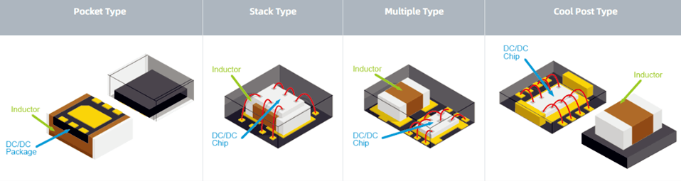 針對產(chǎn)品規(guī)格、EMI、線圈、發(fā)熱、成本等特性,Torex推出如下四種封裝結構線圈一體型DCDC。
