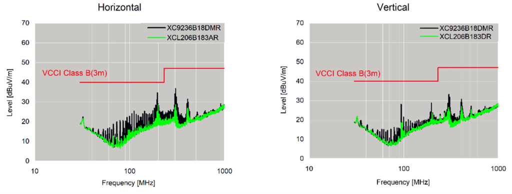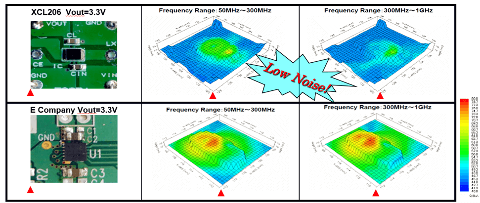 XCL系列采用漏磁通少的線圈,優(yōu)化線圈特性,優(yōu)化DC/DC轉換器的動作以及優(yōu)化電流路徑,相比傳統(tǒng)DCDC,能實現(xiàn)EMI顯著降低。