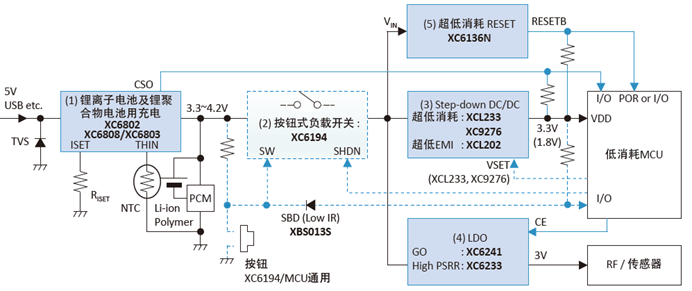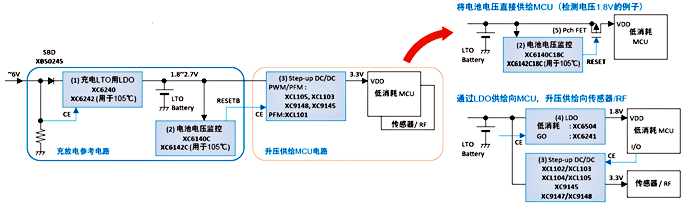 - 后級使用低壓MCU,可通過LDO XC6241或PMOS直接供電