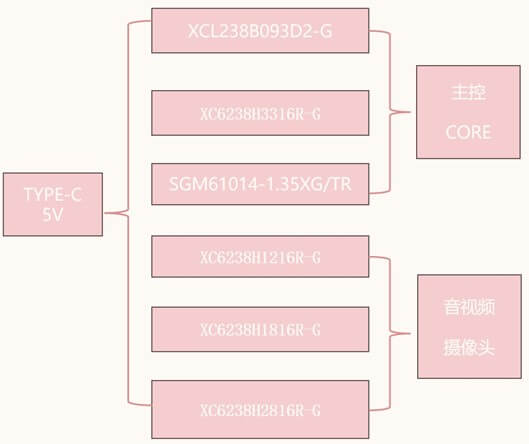 在AR眼鏡產(chǎn)品中,電路設(shè)計(jì)部分基本上集中在了鏡腿部分,所以需要一個輸出電壓0.9V的超小封裝的DCDC給主控和Core部分供電,電流需求1000mA,由于AR眼鏡的鏡腿部分空間有限,就要求此顆DCDC外圍電路越簡單越好,XCL238系列只需在外部元件上添加兩個陶瓷電容器即可創(chuàng)建電源電路。 由于線圈是內(nèi)置的,所以電路板布局更加容易,并且可以最大限度地減少因元件放置和接線而引起的故障和噪聲。非常符合AR眼鏡的核心電壓供電需求。