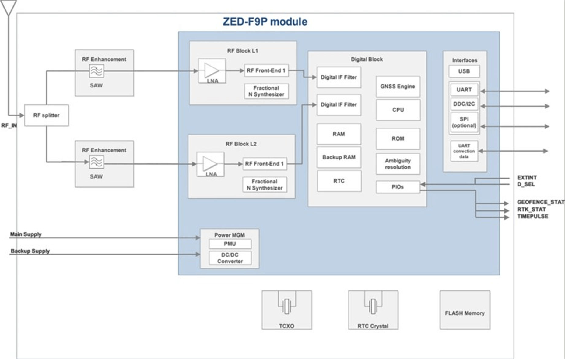特點(diǎn):ZED-F9P是u-blox公司生產(chǎn)的一種高精度GNSS模塊,支持多星座多頻接收,包括GPS、GLONASS、Galileo和BeiDou。其集成RTK(實(shí)時(shí)動(dòng)態(tài))技術(shù),提供厘米級(jí)的定位精度,特別適合動(dòng)態(tài)應(yīng)用如無(wú)人機(jī)和工業(yè)機(jī)械的導(dǎo)航。該模塊在緊湊型封裝中提供高更新率和低功耗,適合大規(guī)模市場(chǎng)采用。