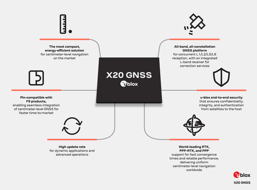 U-blox ZED-X20P全頻段高精度GNSS模塊,它能夠接收來(lái)自GPS、Galileo、北斗、QZSS和NavIC衛(wèi)星的所有GNSS頻段(包括L頻段)的信號(hào)。在單芯片接收器上的集成度高,可實(shí)現(xiàn)全新的系統(tǒng)架構(gòu),為工業(yè)導(dǎo)航和機(jī)器人市場(chǎng)(產(chǎn)品如:無(wú)人駕駛車輛 (UAV)、導(dǎo)引系統(tǒng)和自動(dòng)轉(zhuǎn)向應(yīng)用)創(chuàng)造價(jià)值。
